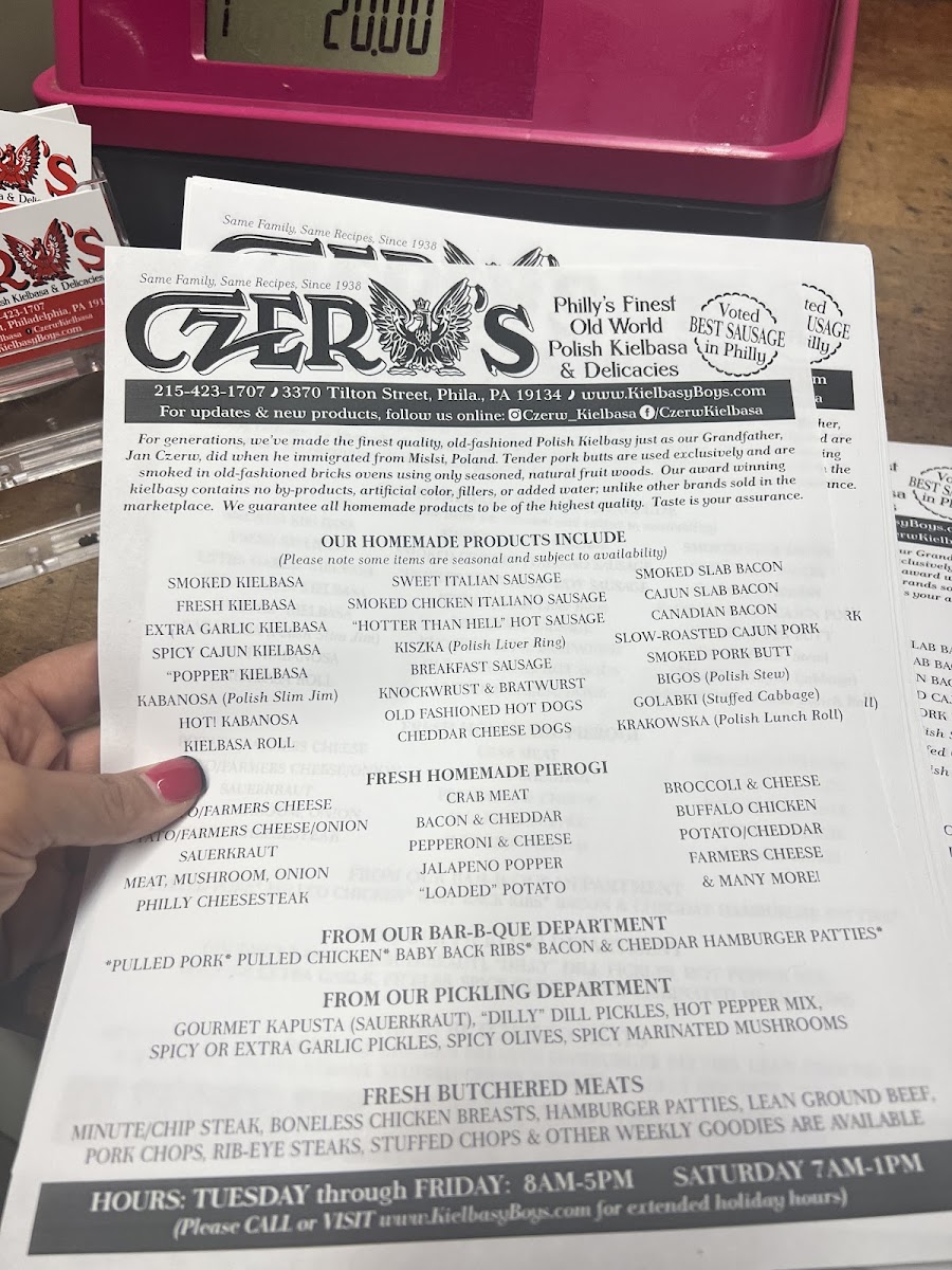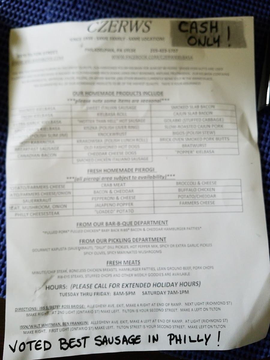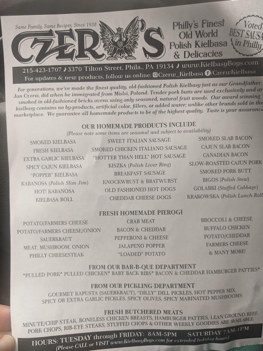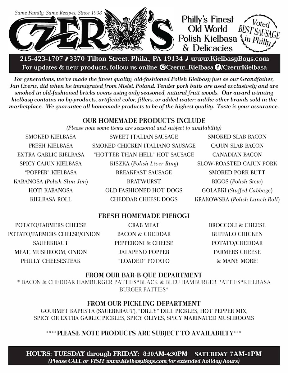 Czerw's Polish Kielbasa Menu
