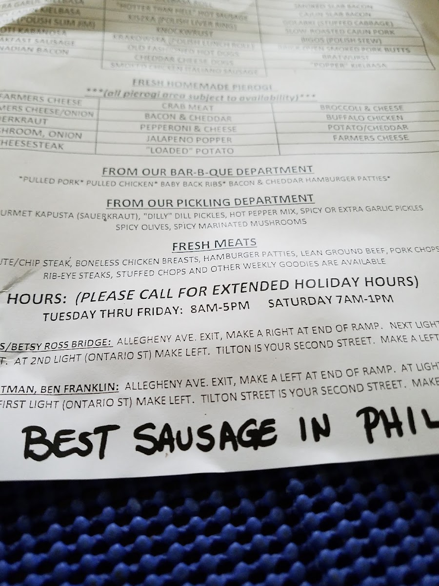 You’ll find a range of handcrafted sausages, including smoked kielbasa varieties like the extra-garlic or Cajun styles, perfect for a satisfying lunch or to bring home for an easy dinner. Alongside these, traditional pierogies and dumplings offer warm, hearty bites that suit any time of day—from casual midday meals to relaxed weekend dinners. Accompaniments like homemade mustards and pickles complete the experience, tying in perfectly with the rustic, welcoming vibe of the space.